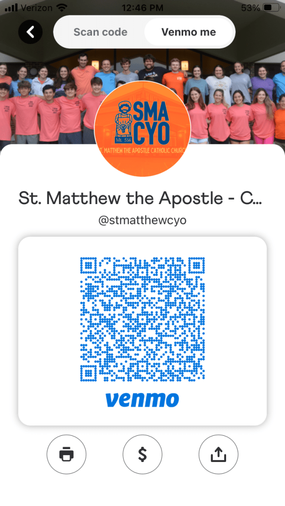 You can now pay through Venmo! Scan the QR code below to pay the $25 dues, $10 t-shirt cost and any other fees!